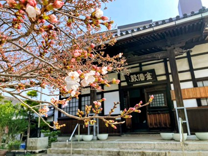 境内では桜が少しずつ咲き始めていて、これから満開になるのが