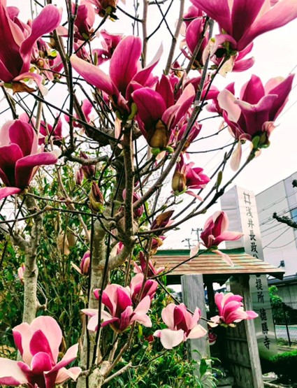 足元に目を向けると鮮やかな黄色い水仙、そして木蓮も綺麗に咲いていて